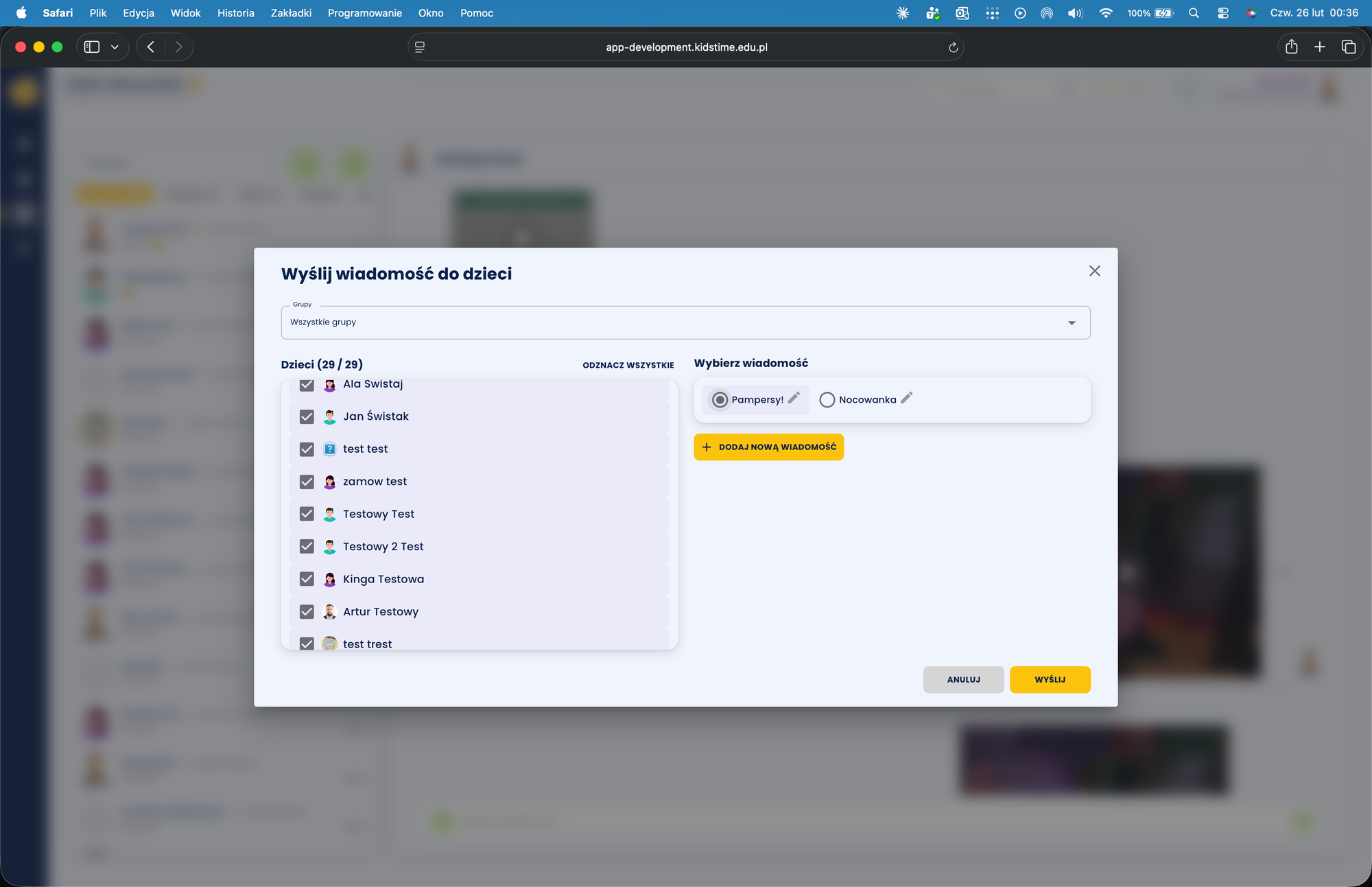 Wysyłanie wiadomości do wielu dzieci jednocześnie